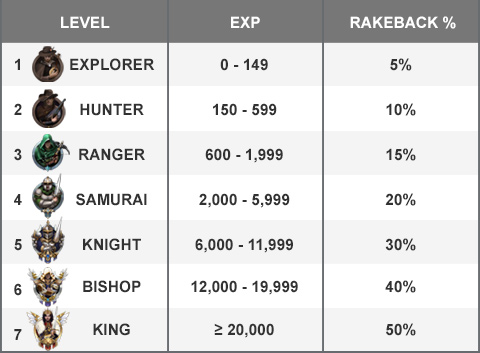 EXP grows based on fees generated in all poker game types. Every $1 paid generates 10 EXP.